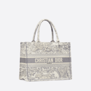 Gray Toile de Jouy Embroidery Small Book Tote – Women’s Leather Bag