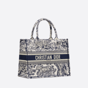 Blue Toile de Jouy Embroidery Small Book Tote – Women’s Leather Bag