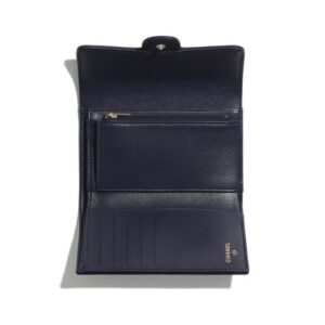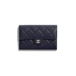 Navy Blue Grained Calfskin Classic Flap Wallet – Women’s Wallet