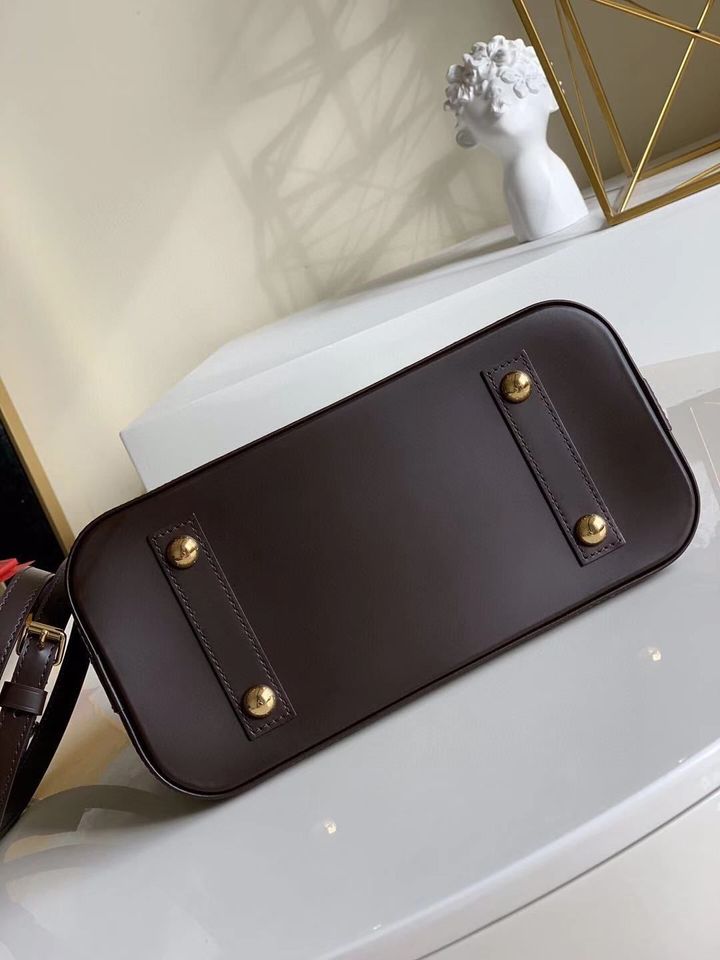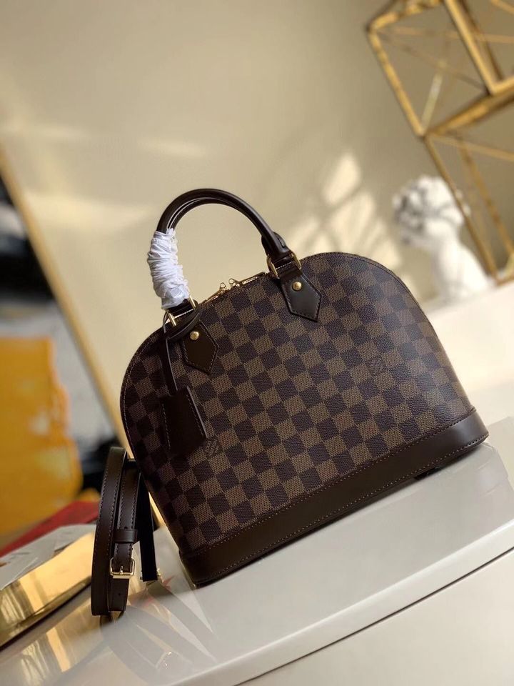 The most structured of the iconic Louis Vuitton handbags. The original was the creation of Gaston Vuitton, who named it for the Alma Bridge, a span that connects two fashionable Paris neighborhoods.