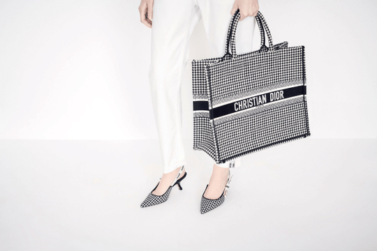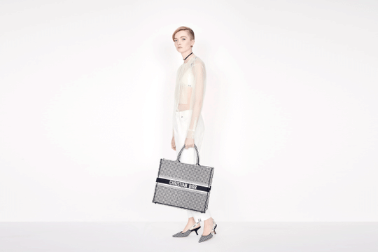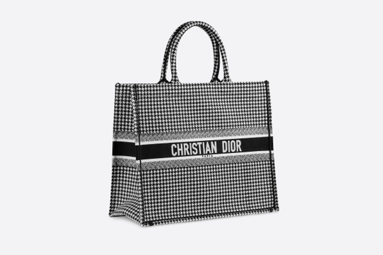 Introduced by Maria Grazia Chiuri, Creative Director for Christian Dior, the Dior Book Tote has become a staple of the Dior aesthetic. Designed to hold all the daily essentials, the style has been fully embroidered with a black-and-white houndstooth motif. Adorned with the ‘CHRISTIAN DIOR’ signature on the front, the bag exemplifies the House’s signature savoir-faire and may be carried by hand or worn over the shoulder.