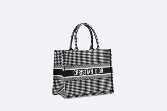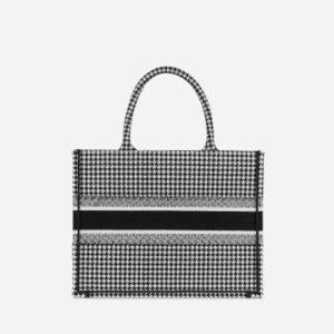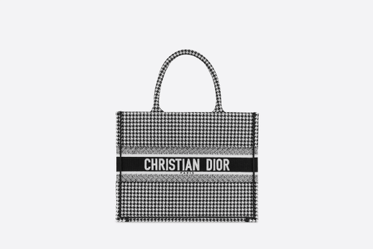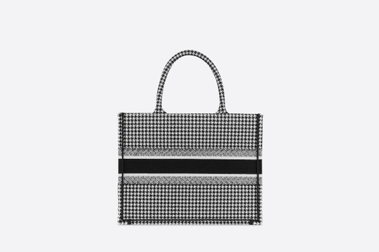 Introduced by Maria Grazia Chiuri, Creative Director for Christian Dior, the Dior Book Tote has become a staple of the Dior aesthetic. Designed to hold all the daily essentials, the small style has been fully embroidered with a black-and-white houndstooth motif. Adorned with the ‘CHRISTIAN DIOR’ signature on the front, the tote exemplifies the House’s signature savoir-faire and may be carried by hand or worn over the shoulder.