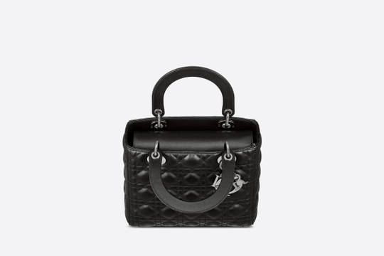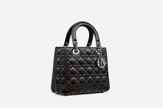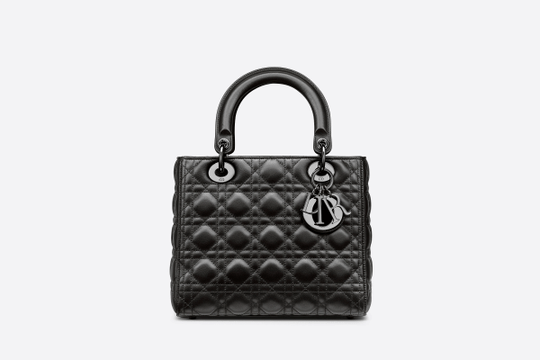 The season’s Lady Dior bag embodies Dior’s vision of elegance and beauty. The refined creation is timeless yet still very relevant. Crafted in black lambskin with Cannage stitching, its supreme quilting instantly stands out and it is completed by a tonal suede interior, while the ruthenium ‘D.I.O.R.’ charms further embellish the silhouette. The medium style features a thin, removable leather shoulder strap and can be carried by hand, worn over the shoulder or crossbody.