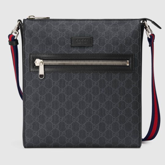 - Black/grey GG Supreme canvas, a material with low environmental impact, with black leather trim
