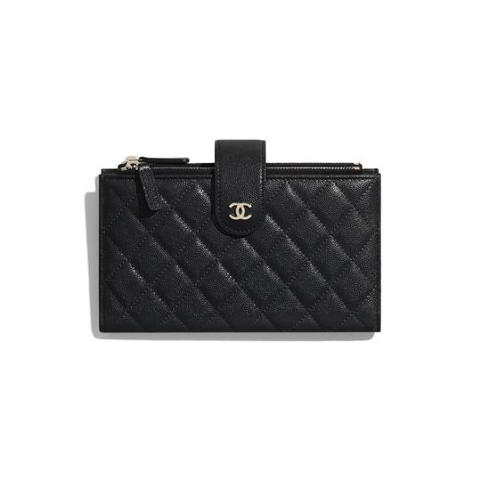 White Calfskin & Black Crochet Chnl 19 Wallet On Chain - Women's Wallet