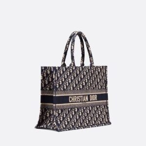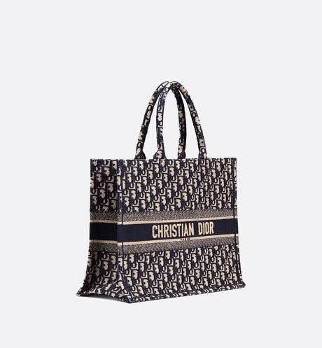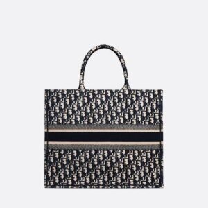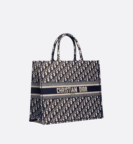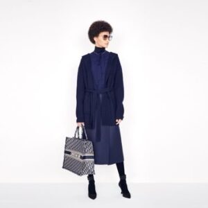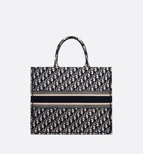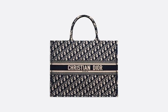 The Dior Book Tote, an original style introduced by Dior’s Creative Director, Maria Grazia Chiuri, has become a staple of the Dior aesthetic. Ideally designed to carry all your daily essentials, the large style is fully embroidered with the iconic Dior Oblique pattern in blue, with a ‘Christian Dior’ signature on the front. This carryall is a perfect example of the Dior savoir-faire and it may be worn with other small accessories or the Mitzah scarf for a complete look.