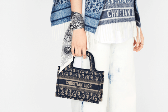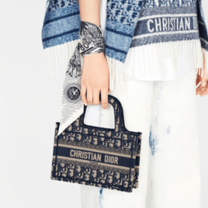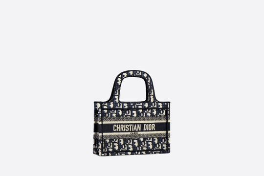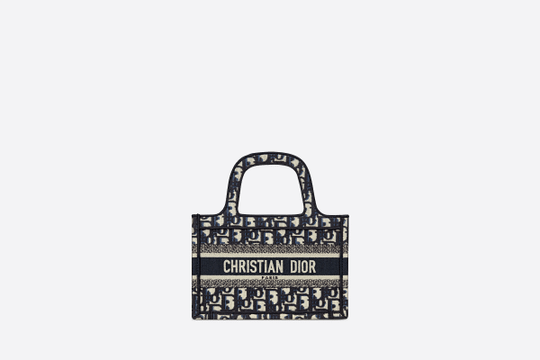 The Mini Dior Book tote, an original style introduced by Dior?s creative director Maria Grazia Chiuri, has become a staple of the Maison?s aesthetic. Ideally designed to carry a paperback-sized book and some daily essentials, the mini bag is made of fully embroidered canvas and features the logo mania original Dior Oblique pattern with the ?Christian Dior? signature on the front. This carryall is a perfect example of the Dior savoir-faire. It may be paired with small leather goods accessories for a complete look.