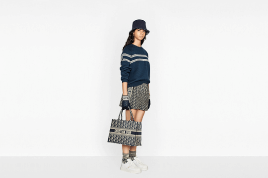 Introduced by Maria Grazia Chiuri, Creative Director for Christian Dior, the Dior Book Tote has become a staple of the Dior aesthetic. Designed to hold all the daily essentials, the small style has been fully embroidered with a blue Dior Oblique motif. Adorned with the ‘CHRISTIAN DIOR’ signature on the front, the bag embodies the House’s signature savoir-faire and may be carried by hand or worn over the shoulder.