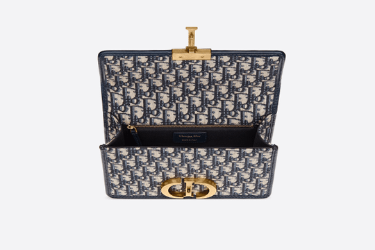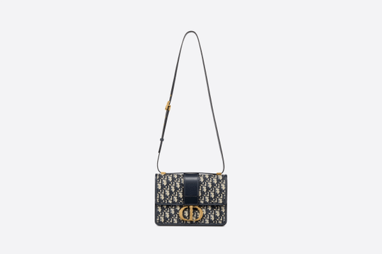 The 30 Montaigne line is inspired by the emblematic address and offers essential pieces that embody the House’s iconic codes. The handbag is crafted in blue Dior Oblique jacquard for an elegant and modern look. The flap is embellished with an antique gold-finish metal ‘CD’ clasp, inspired by the seal of a Christian Dior perfume bottle. Refined details, such as an embossed ’30 MONTAIGNE’ signature on the back, define this unique design. Featuring an adjustable leather shoulder strap, the bag may be carried by hand, worn over the shoulder or crossbody.