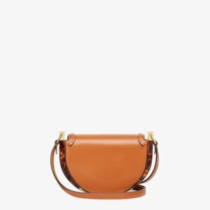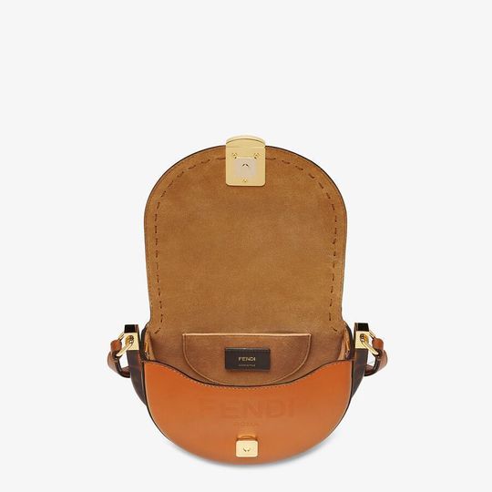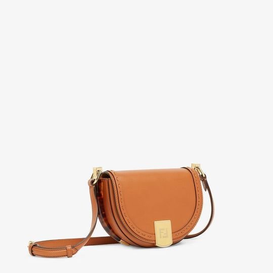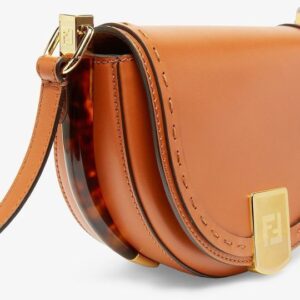 Hand-stitched white leather satchel featuring a metallic closure with the iconic FF motif and hot-pressed Fendi Roma logo under the flap. With a lined, internal compartment, small inner pocket, tortoiseshell-effect plexiglass details and gold-finish metalware.