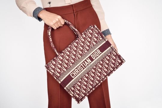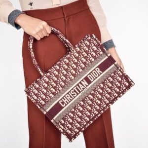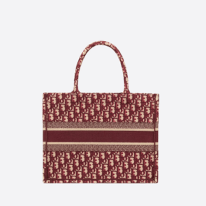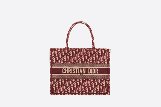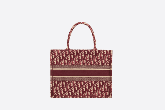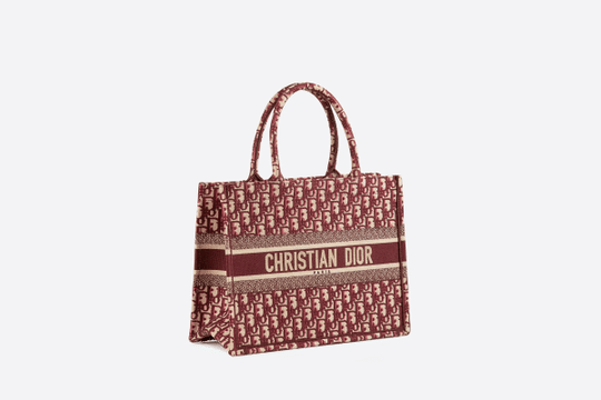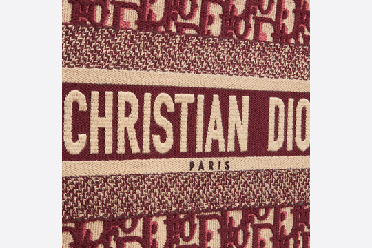 Small Dior Book Tote bag in burgundy Dior Oblique embroidered canvas.
