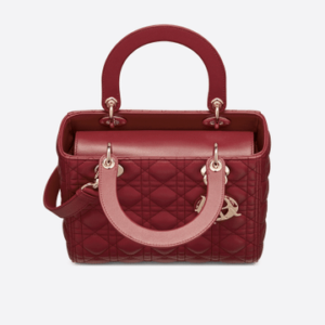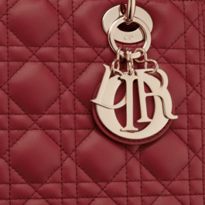 The Lady Dior handbag epitomizes the House’s vision of elegance and beauty. Sleek and refined, the timeless yet relevant style is crafted in cherry red lambskin with Cannage stitching, creating the instantly recognizable quilted texture. The pale gold-finish metal signature ‘D.I.O.R.’ charms offer an elegant allure. Featuring a thin, removable leather shoulder strap, the medium Lady Dior bag can be carried by hand, worn over the shoulder or crossbody.
