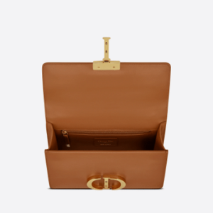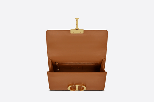 The 30 Montaigne line, inspired by the historic, emblematic address, presents essential pieces that portray the House’s iconic codes. This handbag is crafted in cognac-colored box calfskin for an elegant and timeless look. The flap is embellished with an antique gold-finish metal ‘CD’ clasp. Refined details such as an embossed ’30 Montaigne’ signature on the back and the supple calfskin sides spotlight the sleek, meticulous design.