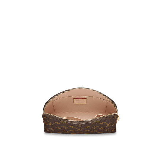 In ever-stylish Monogram canvas the Cosmetic Pouch GM is a luxurious accessory. Shiny golden brass details and textile lining complete its elegant look.