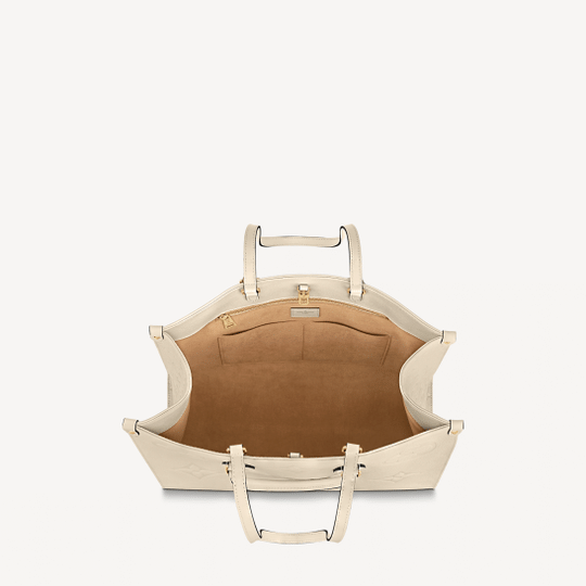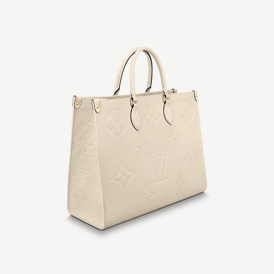 The stylishly oversized OnTheGo GM tote goes from workday to weekend without missing a beat. The bag?s square shape affords plenty of room for stowing office files and a laptop. For the first time, this model is offered in Monogram Empreinte Giant, a supple embossed leather. Versatile, it can be carried by hand or worn over the shoulder on its two long straps.