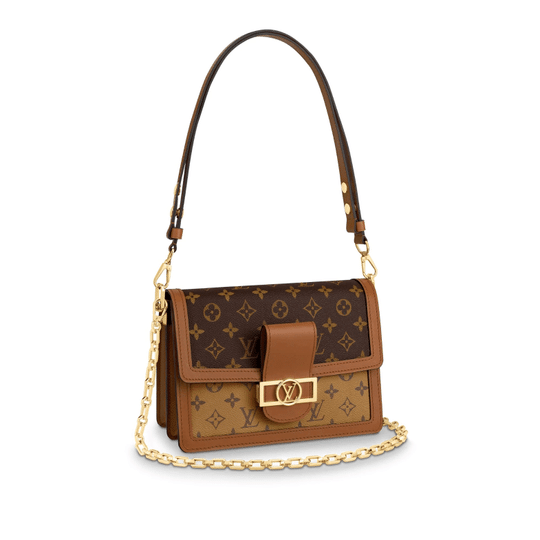 This Louis Vuitton classic is the latest it-bag: Nicolas Ghesqui?re has updated the Dauphine for the Cruise 2019 collection. With its appealing combination of Monogram and Monogram Reverse canvas plus new features like a chain strap and magnetized lock, it epitomizes the House?s flair for adapting its heritage to modern lifestyles. A must-have for Monogram lovers.
