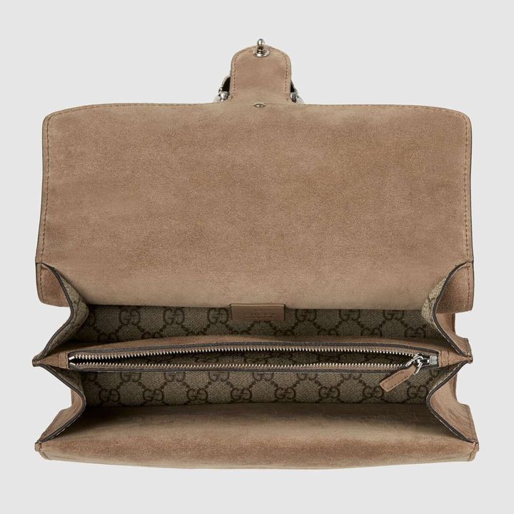 - Suede lining with GG canvas interior the pockets