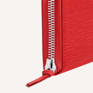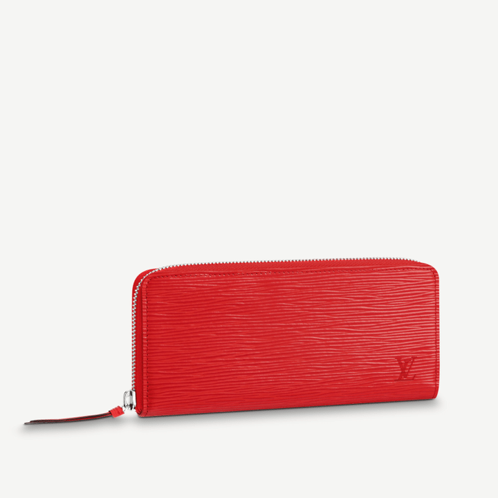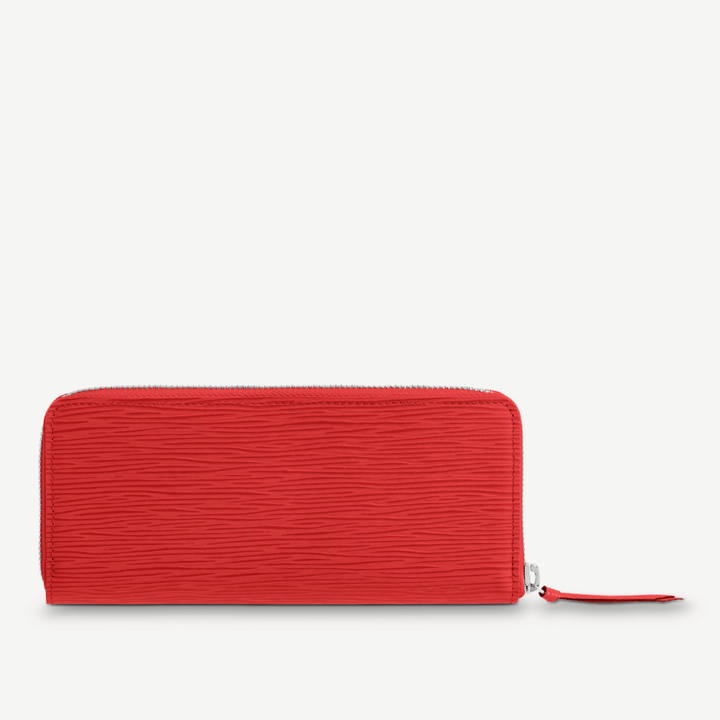 Emblematic Epi leather complements the sleek, slim-line design of the Cl?mence Wallet. The silver-tone zip, finished with a leather zip pull, opens wide to reveal two large compartments, a central zipped coin pocket and several card slots. This elegant model can double as a clutch.