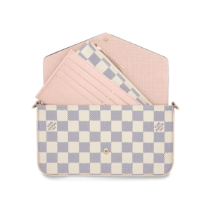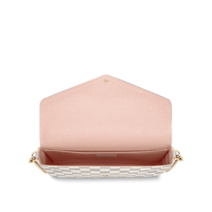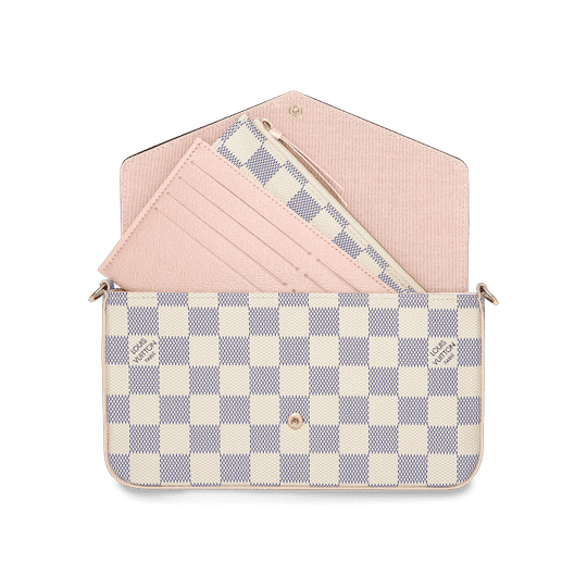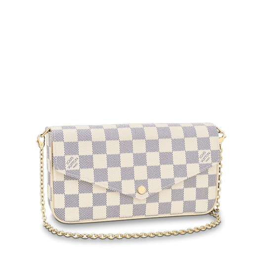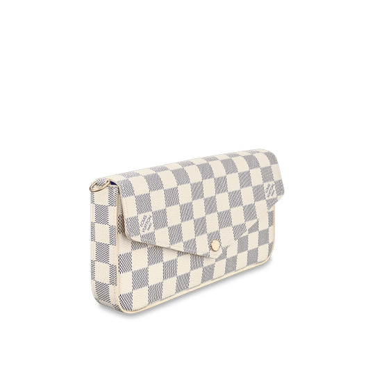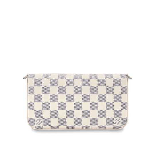 The Pochette F?licie in Damier Azur canvas is a versatile pouch for modern lifestyles. Its envelope-style flap opens to reveal a spacious compartment with two removable pockets: one zipped, another with several card slots. It can be carried on the shoulder or across the body, or – with the chain removed – as a clutch.