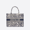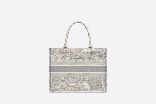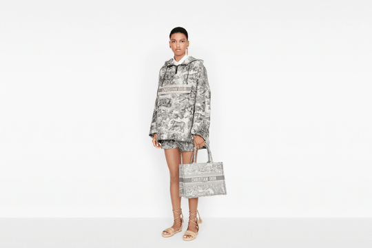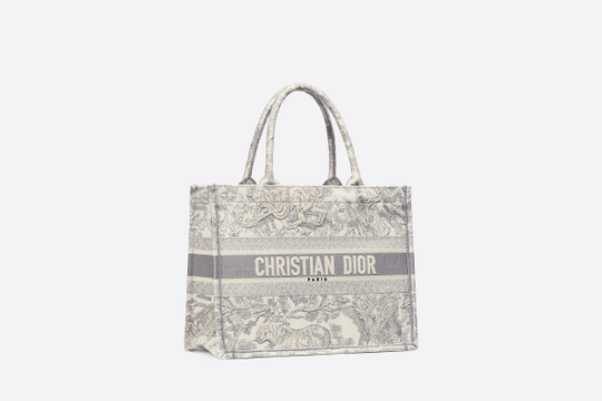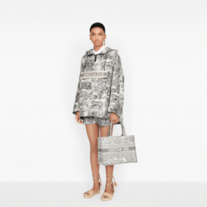 The Dior Book Tote, an original style introduced by Creative Director Maria Grazia Chiuri, has become a staple of the Dior aesthetic. Ideally designed to carry all your daily essentials, the small shape is fully embroidered with a gray Toile de Jouy motif and the ‘Christian Dior’ signature on the front. This carryall, part of the Dioriviera capsule, is a perfect example of the Dior savoir-faire and it may be worn with other small accessories or the Mitzah scarf for a complete look.
