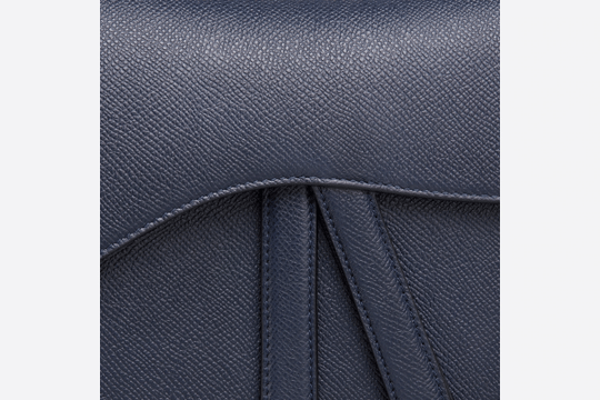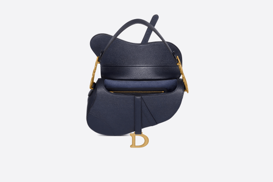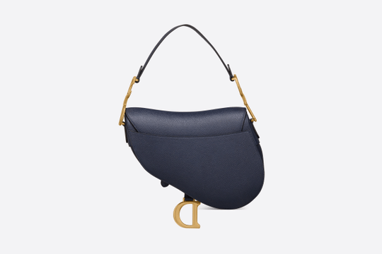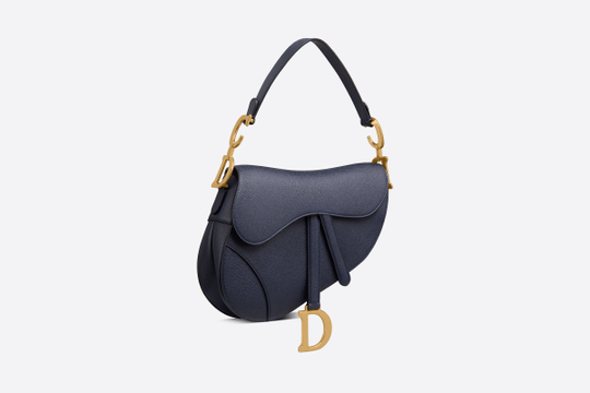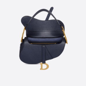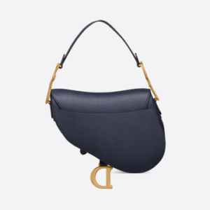 The iconic Saddle bag is reinvented once more by Maria Grazia Chiuri. Featuring a Saddle flap with a magnetic ‘D’ stirrup clasp, it boasts a ‘CD’ signature on each side of the handle. The indigo blue grained calfskin style is embellished with antique gold-finish metal hardware. The Saddle bag may be carried by hand or worn over the shoulder and can be customized with different shoulder straps.