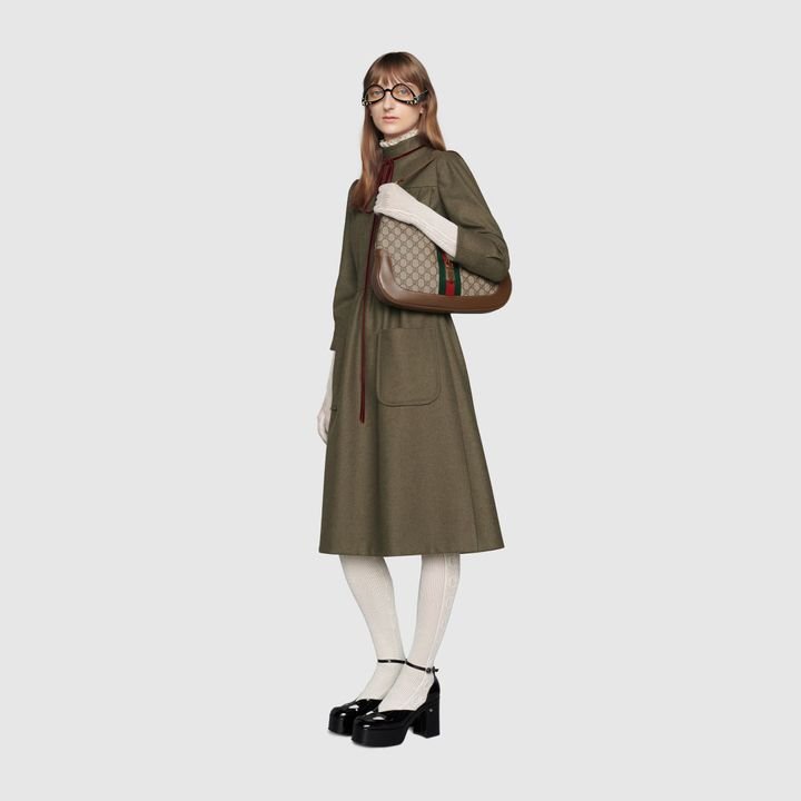 The reintroduction of the Jackie bag for Fall Winter 2020 presents a new take on a historical GG icon. Brought back to the forefront, the recognizable shape is presented in GG Supreme canvas and enhanced with an additional, detachable shoulder strap. Attached to the bag with a buckle closure, the second strap adds a contemporary feel to the archival style, providing new ways to wear?from top handle, shoulder to cross body. Pieces with versatile ways to wear and style embrace each person who is part of the House?s individual spirit.
