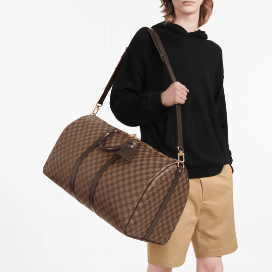 An icon since the appearance in 1930, the Keepall embodies the spirit of modern travel. Light, supple and always ready for immediate departure, the bag lives up to its name: those adept at the art of packing can easily fit a week’s wardrobe into the generously sized (and cabin-friendly) Keepall 55. Shown here in classic Damier Canvas, with a strap for casual cross-body wear.