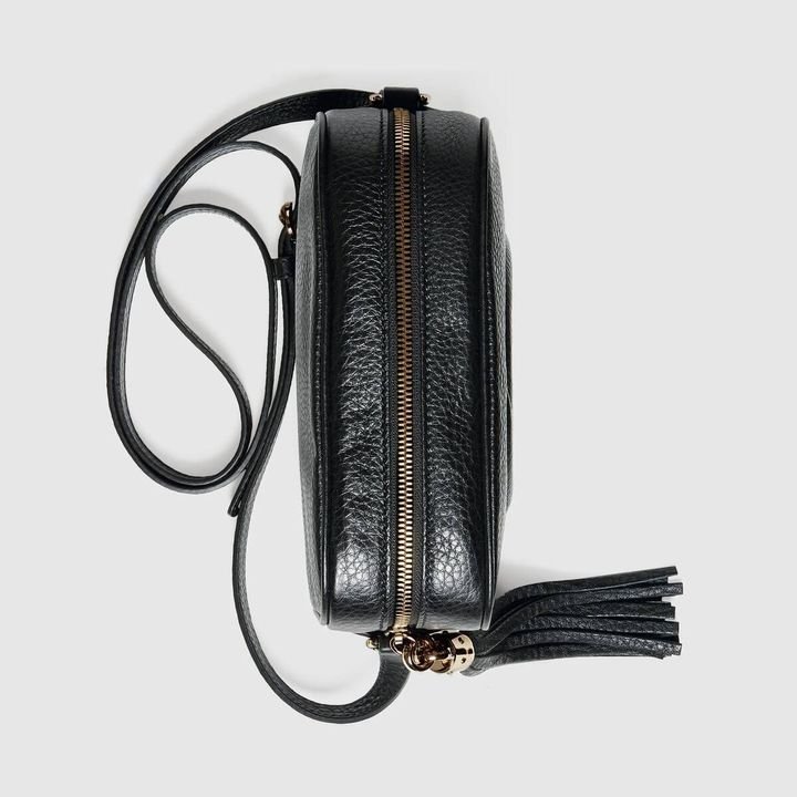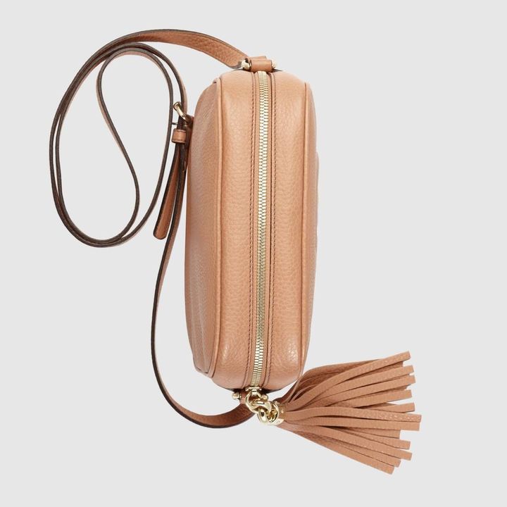 A compact shoulder bag with a leather tassel zipper pull. Sized to fit the necessities. Made in our light, natural grain leather.