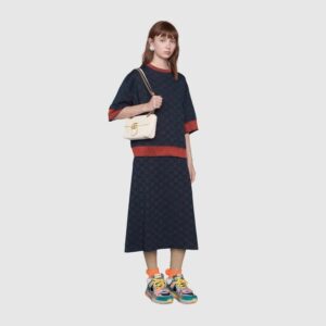 The small GG Marmont flap bag has a softly structured shape and an flap closure with Double G hardware. The sliding chain strap can be worn multiple ways, changing between a shoulder and a top handle bag. Made in matelass? chevron leather with a heart on the back.