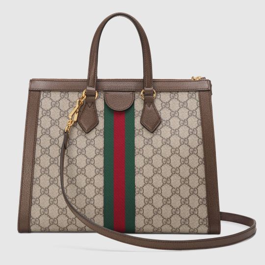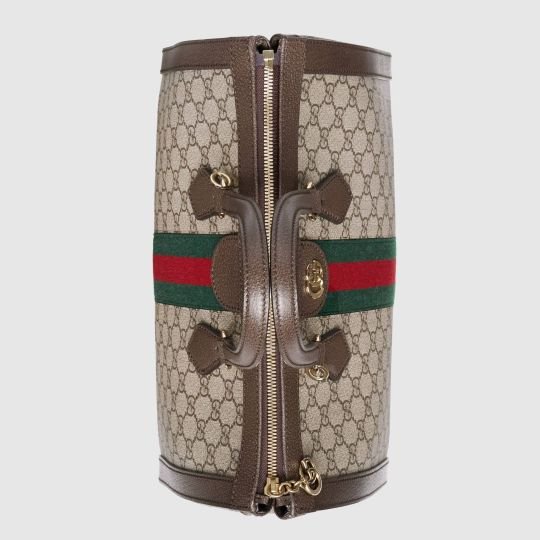 Imbued with retro-inspired references, the world of Ophidia evolves with the introduction of a medium top handle bag defined by a squared shape that recalls vintage designs. Crafted in GG Supreme canvas, the accessory features some of the most distinctive House codes, like the green and red Web stripe?an homage to the equestrian world?and the Double G from the ’70s archives, here reworked with a sophisticated take. The bag is completed with a detachable shoulder strap which allows it to be carried in multiple ways.