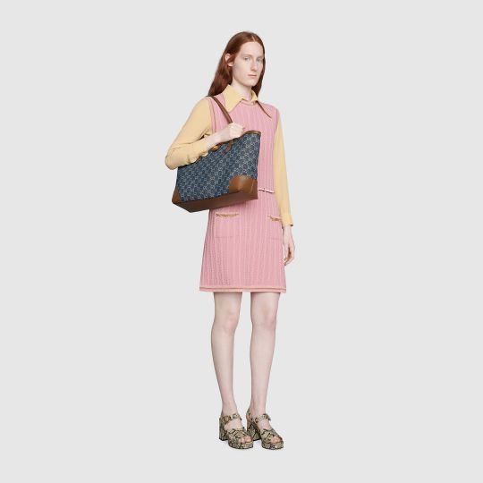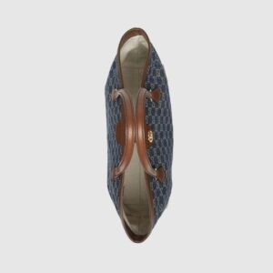 Brought back to the forefront, the recognizable shape is presented in denim with a GG motif and enhanced with an additional, detachable shoulder strap. Attached to the bag with a buckle closure, the second strap adds a contemporary feel to the archival style, providing new ways to wear?from top handle, shoulder to cross body.