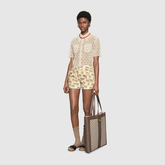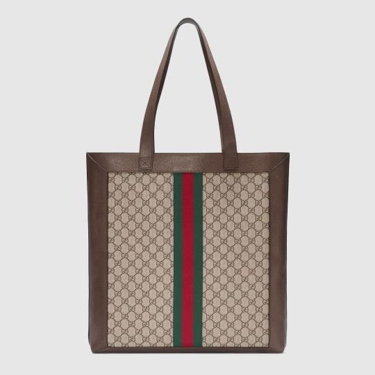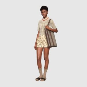 First used in the 1970s, the GG logo was an evolution of the original Gucci rhombi design from the 1930s, and from then it’s been an established symbol of Gucci’s heritage. This large tote combines the signature motif with the Web stripe?a timeless pairing that pays homage to Gucci’s roots. Thanks to its long leather handles, the style can also be carried as a shoulder bag.