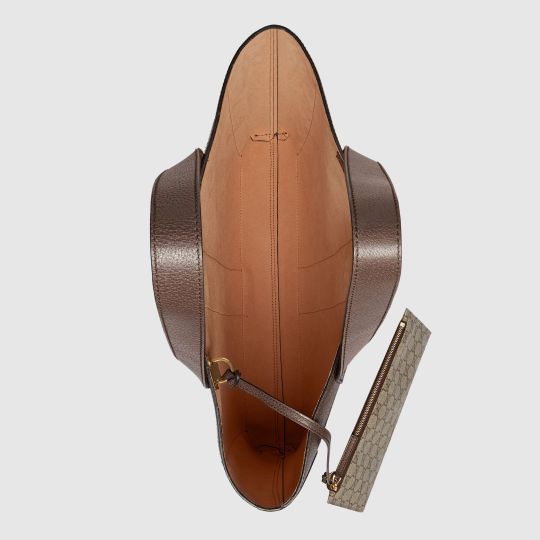 - Beige/ebony soft GG Supreme, crafted from a coated microfiber fabric, with brown leather trim