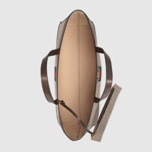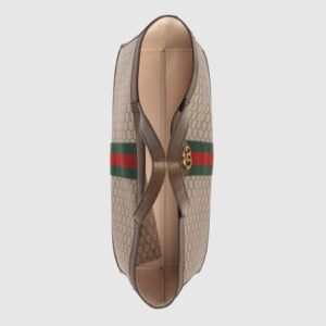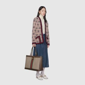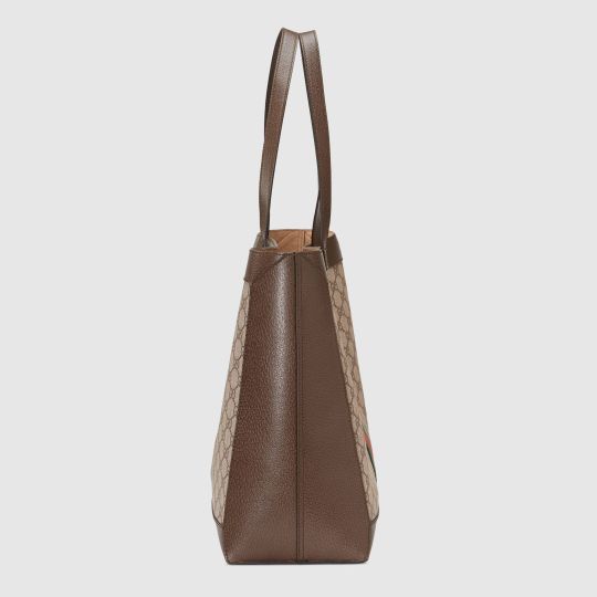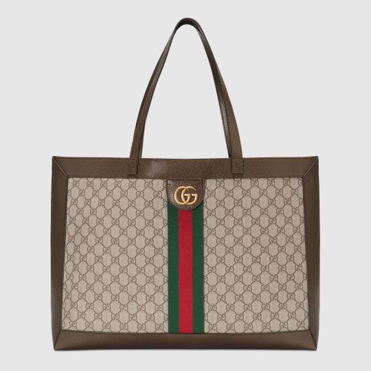 A classic combination of the House’s most recognisable elements?the GG motif and Web stripe?the world of Ophidia continues to evolve, incorporating new shapes and silhouettes. The wide tote is made from supple soft GG Supreme canvas, trimmed with textured leather and topped with Double G hardware. Thanks to its long leather handles, the style can also be carried as a shoulder bag.