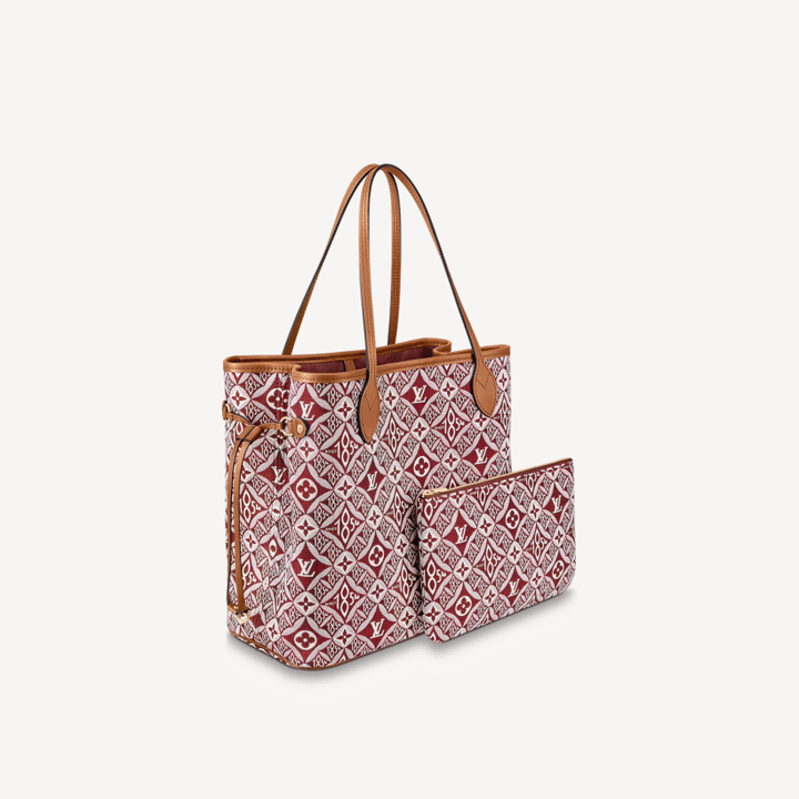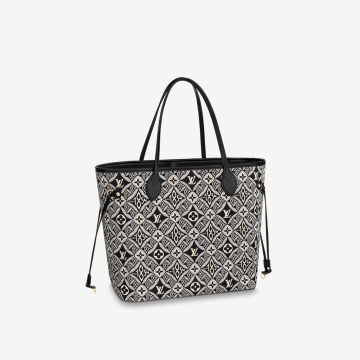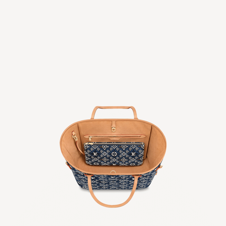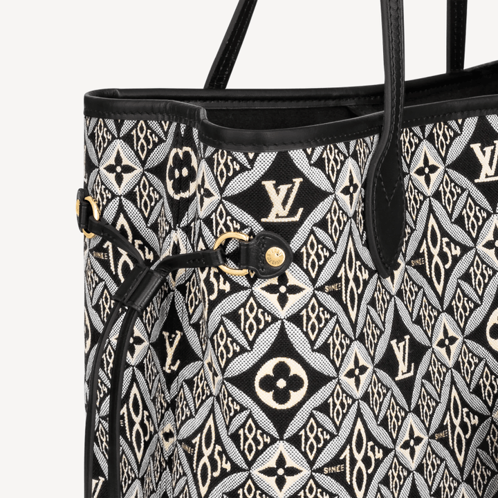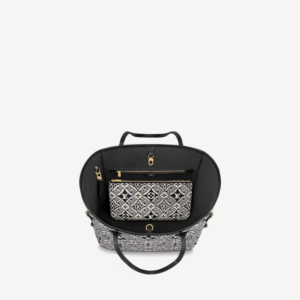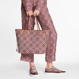 For Winter 2020, the House’s classic Neverfull MM tote is made from Nicolas Ghesqui?re?s new signature textile: a modern pattern featuring many of the House?s symbols. Inspired by wallpapers from the 1960s, Monogram Flowers and LV Initials are combined with 1854s, the year Louis Vuitton started his company, to create a pattern with a neo-vintage feel.