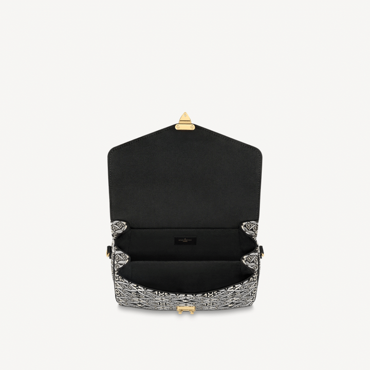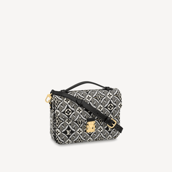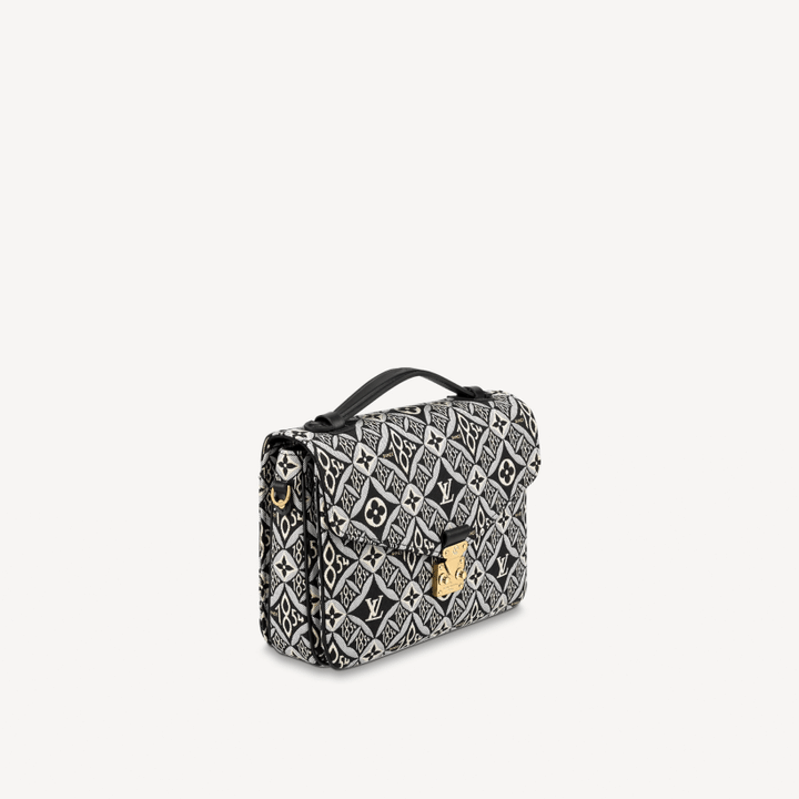 The fashionable Pochette M?tis handbag is made from Jacquard Since 1854 textile for Winter 2020. The vintage-inspired woven pattern combines Louis Vuitton symbols with the number 1854, the year the company began business. This go-everywhere bag boasts a chic top handle and a long detachable strap for shoulder or cross-body wear.