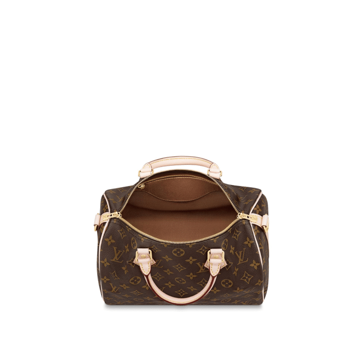 The Speedy Bandouli?re 30 in signature Monogram canvas is an ideal city bag for every day. Originally created for travelers in the 1930s ? the name refers to the era?s rapid transit ? every feature of the Speedy?s design is iconic, from its unmistakable shape to the rolled leather handles, engraved padlock and detachable strap.