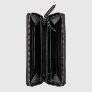 Black Leather Zip Around Wallet With Gold Toned GG – Women’s Wallet