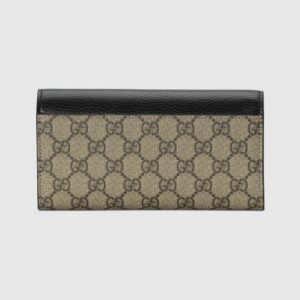 Presented in a mix of the House’s monogram canvas and white leather, this continental wallet is completed with a petite version of the House’s Double G monogram hardware. The interior features several card slots and two bill compartments, securing with a snap closure.
