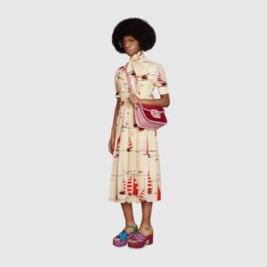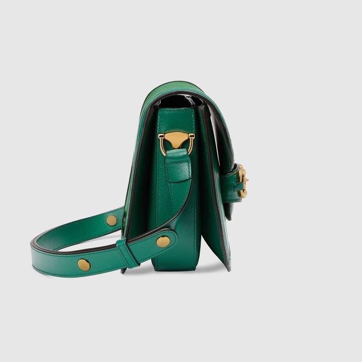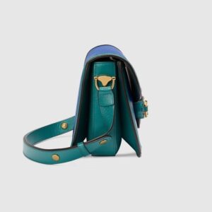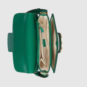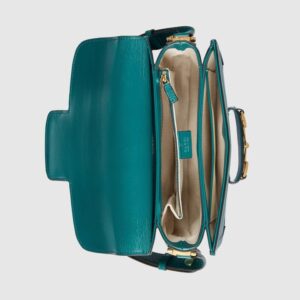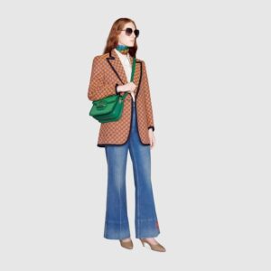 Signature styles from the Beloved lines are presented in vibrant colors that recall precious gems. Here the Dionysus is introduced in green leather with a gold-toned take on its emblematic tiger head closure. The textured hardware is further enhanced by shiny enamel