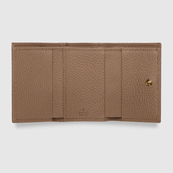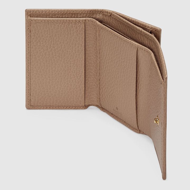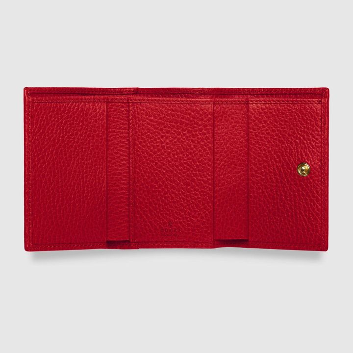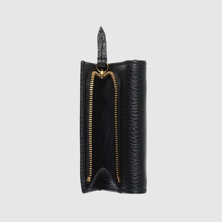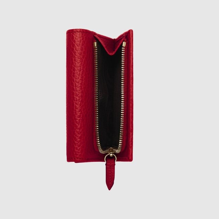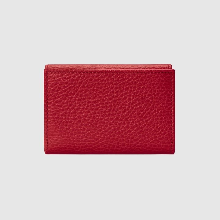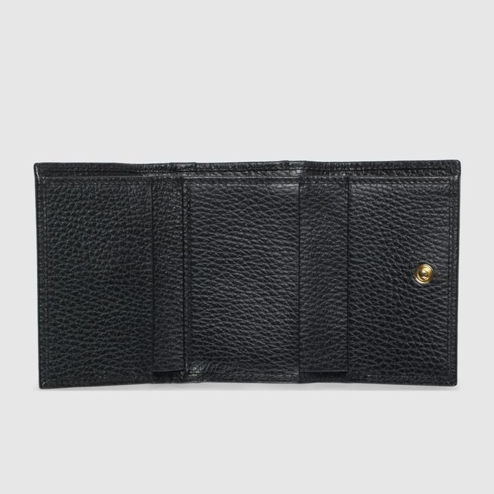 Crafted from leather, this medium-sized wallet is presented with a miniature version of the Double G. Taken from the ’70s archives, the hardware is a homage to the Founder of the House?Guccio GG