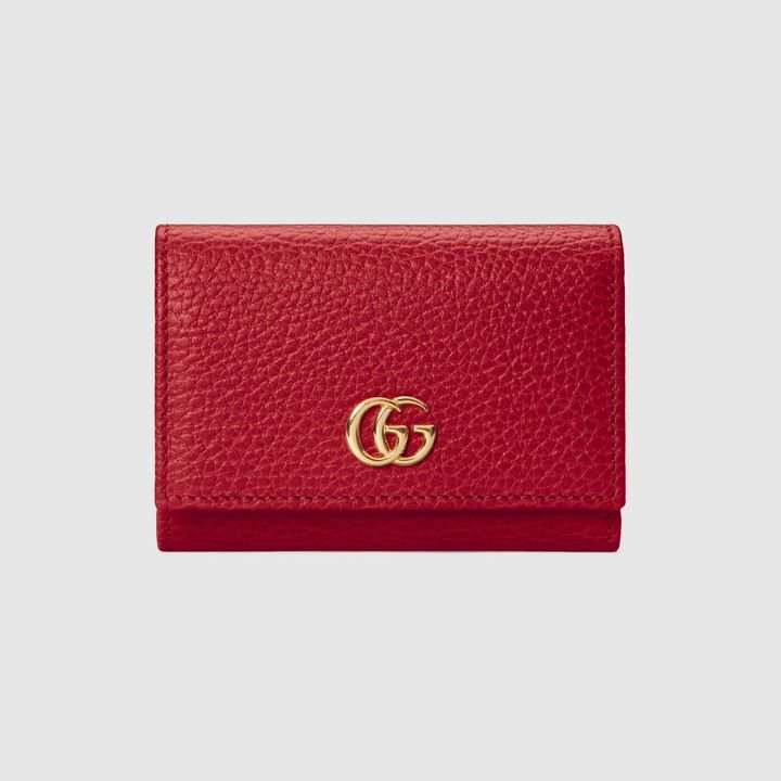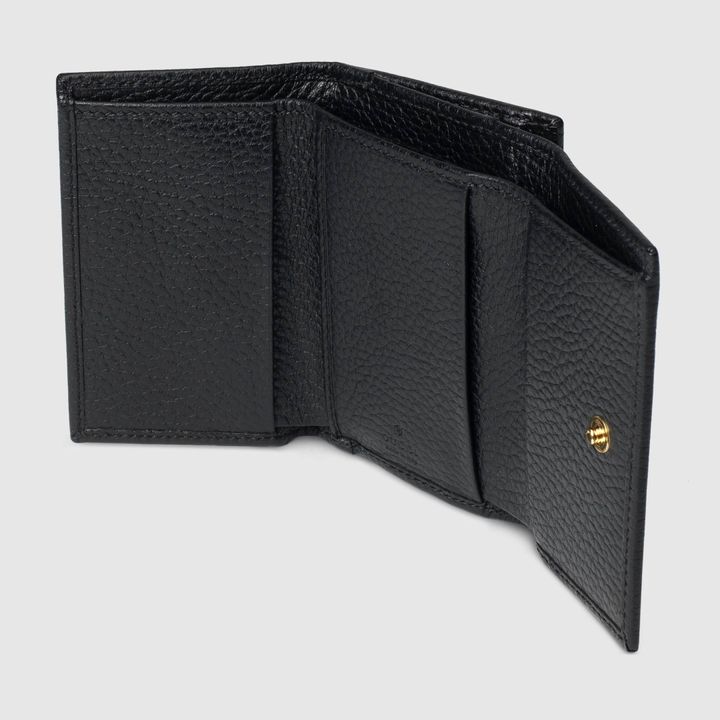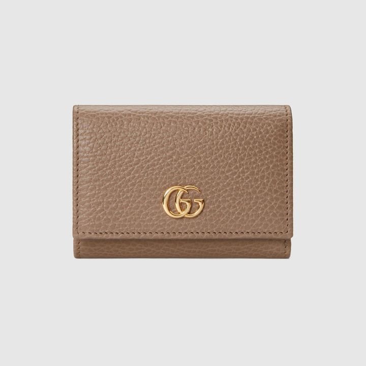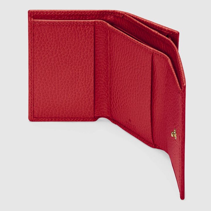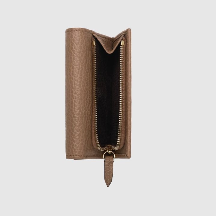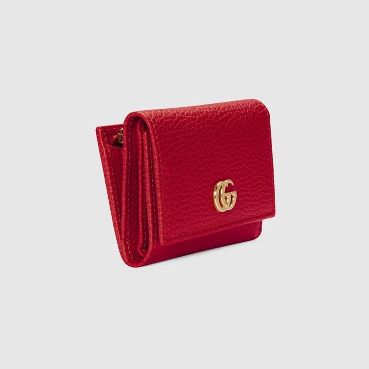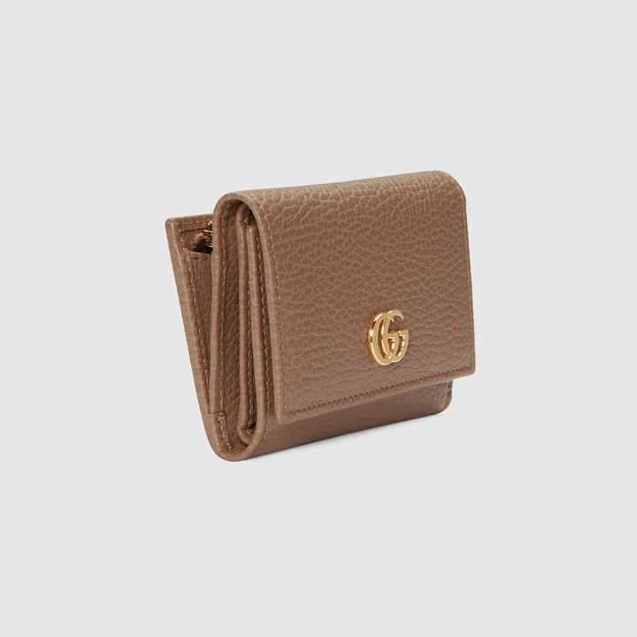 Crafted from leather, this medium-sized wallet is presented with a miniature version of the Double G. Taken from the ’70s archives, the hardware is a homage to the Founder of the House?Guccio GG