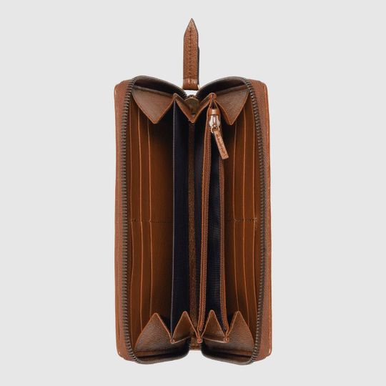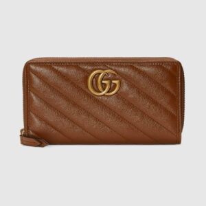 A message about leaving fashion?s old rules behind, Epilogue conveys the idea that pieces should be timeless?not just in fashion for one season. The collection highlights Alessandro Michele?s most emblematic styles and motifs from the past 5 years, like the GG Marmont line. Emblematic of the line, the zip around wallet is presented in brown leather with a diagonal mateless? design.